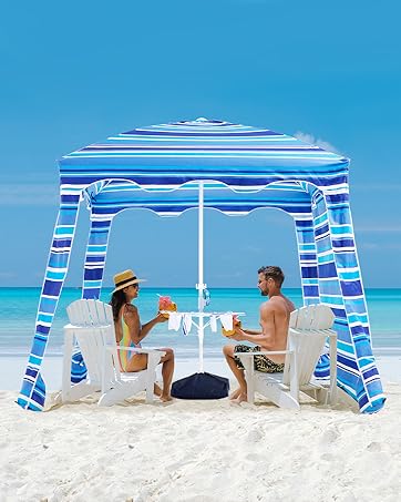 JEAREY 6.5x6.5ft Beach Cabana with Detachable Sand Anchor & Side Wall, Portable UV 50+ Protection Beach Cabanas for Sand, Easy to Set Up Beach Cabana Umbrella, Cool Cabana Beach Canopy